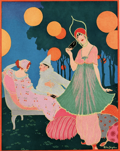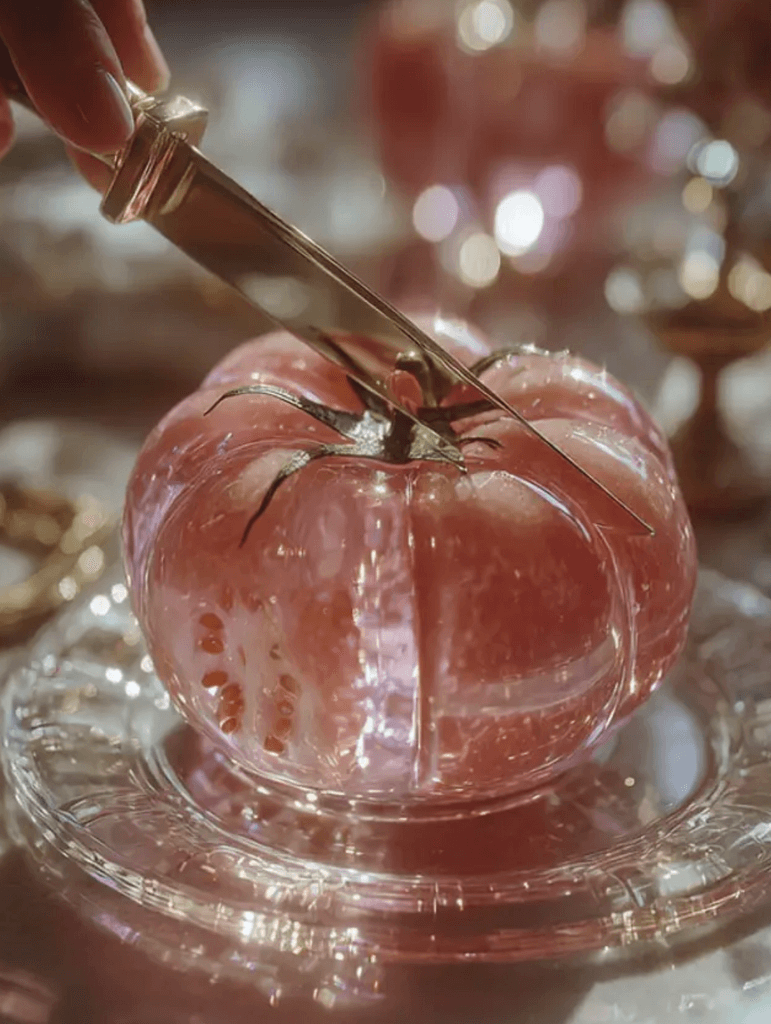 The composition is dynamic, with fruits and draped fabric creating movement. Contrasting colors add visual interest. Though the background slightly competes with the subject, the overall layout remains harmonious and cohesive.
