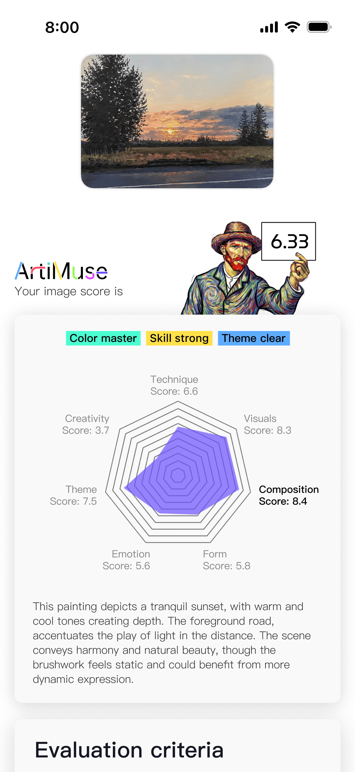 Your judges might look familiar, perhaps Picasso, Monet, or another legendary master. ArtiMuse generates art characters that mirror your work’s style, holding a score card and making every evaluation a moment of playful surprise.