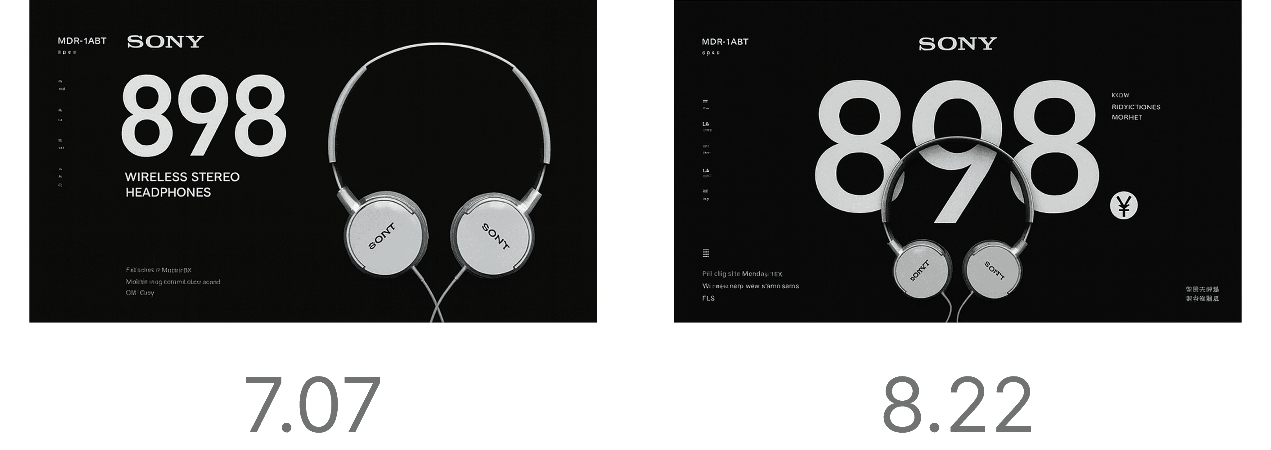 AI evaluates design quality through 8 aesthetic dimensions, revealing the reasons behind each score.